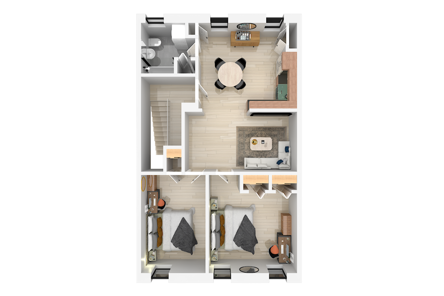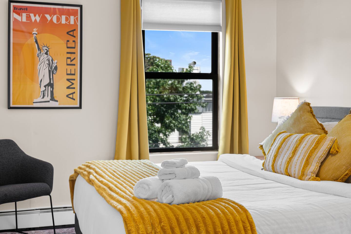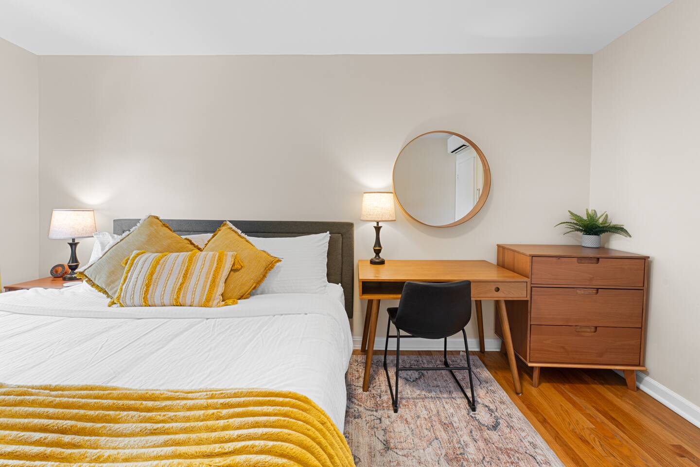 The space - 2 bedroom / 1 bathroom 4th (top) floor apartment - Both bedrooms have KING size beds - Spacious living area, south facing - Smart 55" Roku TV - High speed internet & desks in both bedrooms ideal for remote work - Full size kitchen & dining area (including microwave, refrigerator, sink, oven, stove & basic cooking amenities) - Coffee station, with complimentary starter tea & coffee - Shower/bathtub - In-unit laundry (washing machine & tumble dryer)